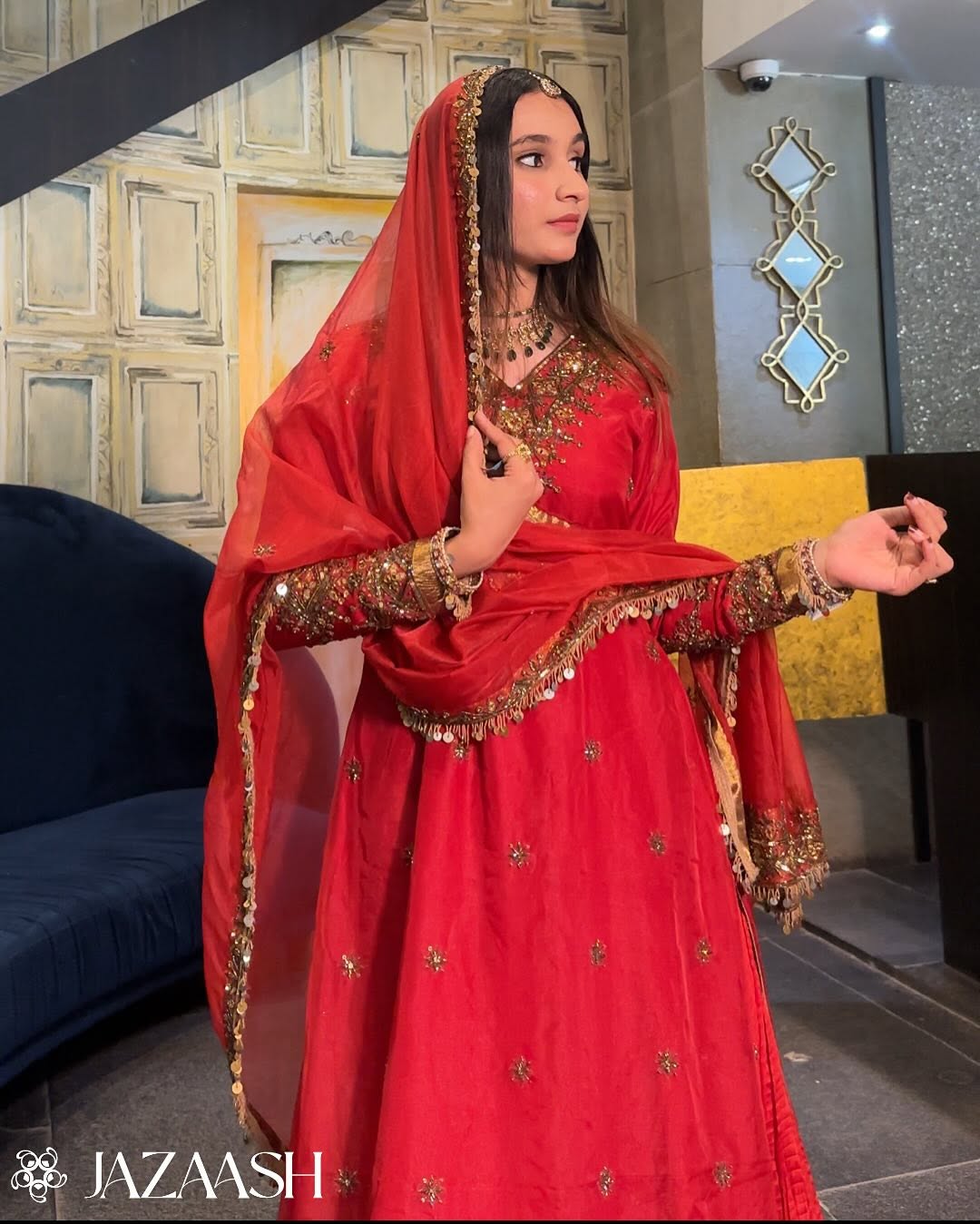 This gorgeous red soft silk gown is pure elegance with a modern twist. It comes with a beautifully hand-worked viscose organza shawl that adds a touch of grace. Flowy, comfy, and perfect for special occasions when you want to make a statement without trying too hard!